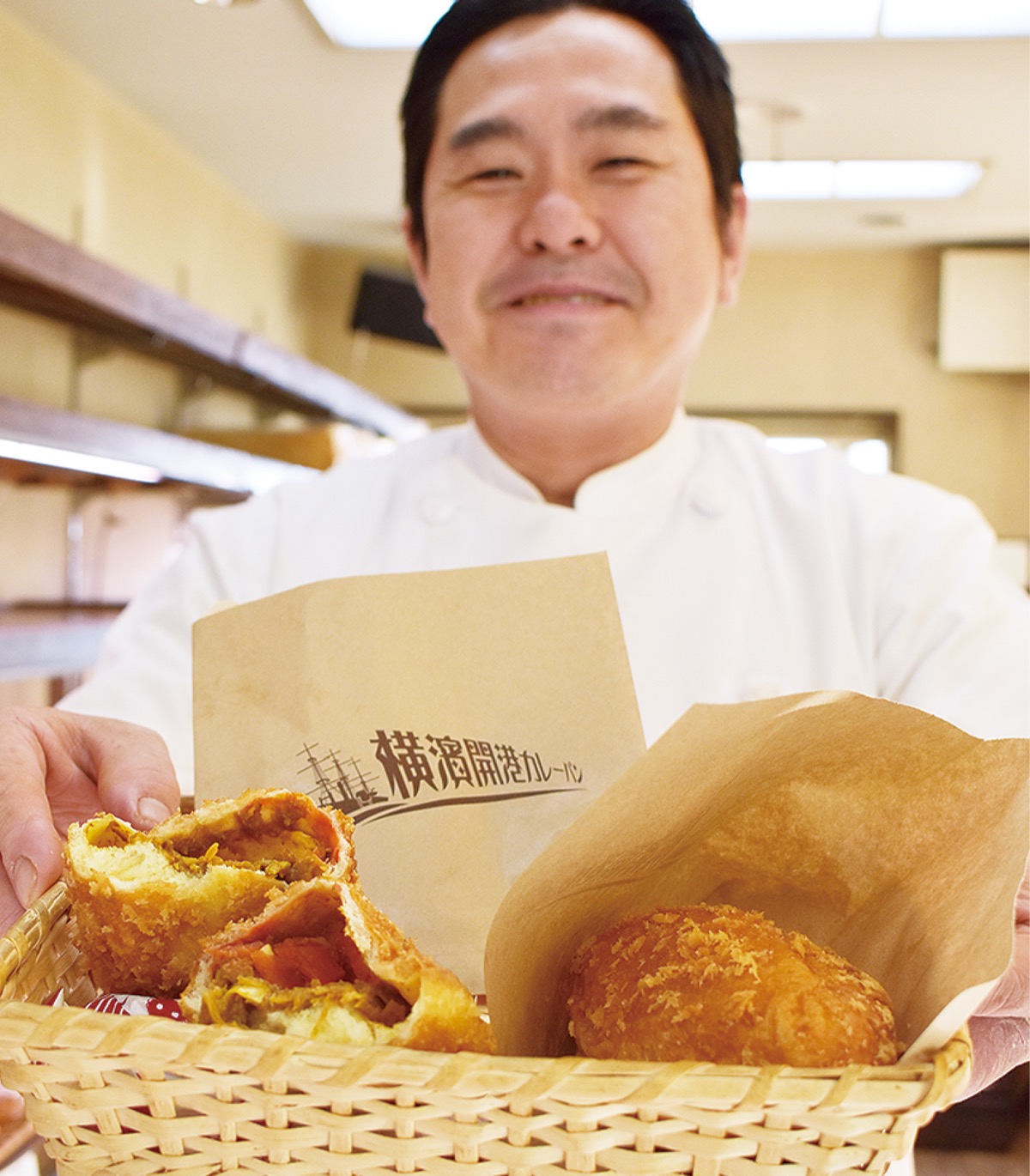 具となるカレーには横濱開港資料館に残る開港当時のレシピに発想を得て、玉ねぎでなく長ネギを使用。メンバーの一人、長嶌大輔さんは「長ネギの存在感を出しつつ、それに負けないようスパイスを調合したり、試行錯誤した」と話す。ピリッと辛いがくどくない欧風カレーをパンに包み、ふっくらと油で揚げた。中には福神漬けも入っている。