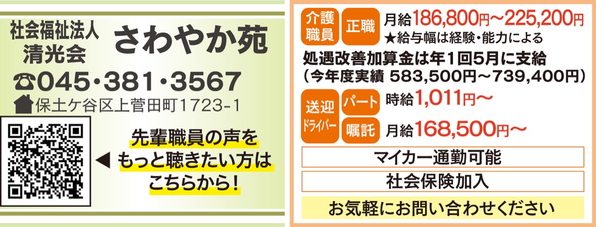 「明るくて、安心して働ける職場です」--。保土ケ谷区上菅田町の特別養護老人ホーム「さわやか苑」。職員たちが口を揃える、さわやか苑の「働きやすさ」について話を聞いた。
