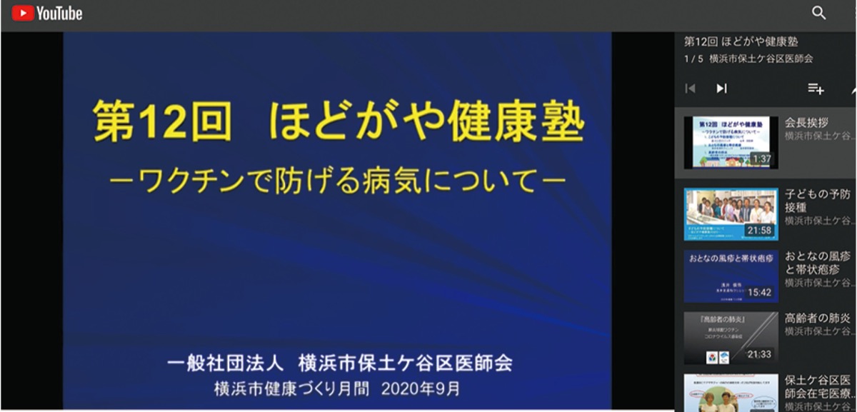 一般社団法人横浜市保土ケ谷区医師会(浅井俊弥会長)が健康づくり月間の企画として毎年秋に開催している「ほどがや健康塾」を新型コロナウイルス感染症の流行を鑑み、今年度は動画共有サイト「YouTube」で配信する形で開催している。