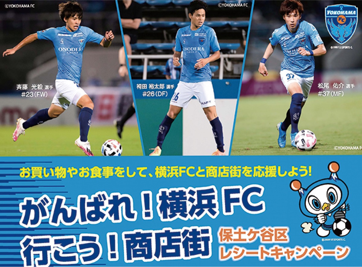 11月から区内の商店街・横浜FCと連携してお互いを盛り上げるためのキャンペーンを実施します。コロナの影響を受けながらも商店街は感染防止対策を進め人情味あふれるサービスで地域コミュニティーを支えています。また、保土ケ谷区をホームタウンとする横浜FCも、見事J1に昇格、強豪チーム相手に奮闘し感動と元気を与えてくれています。今回のキャンペーンでは横浜FCのご協力で、商店街でお買い物やお食事をした方に、抽選でホームゲーム観戦チケットやサイン入りユニフォームなどをプレゼント!この機会に商店街を盛り上げ、横浜FCに声援を届けましょう。