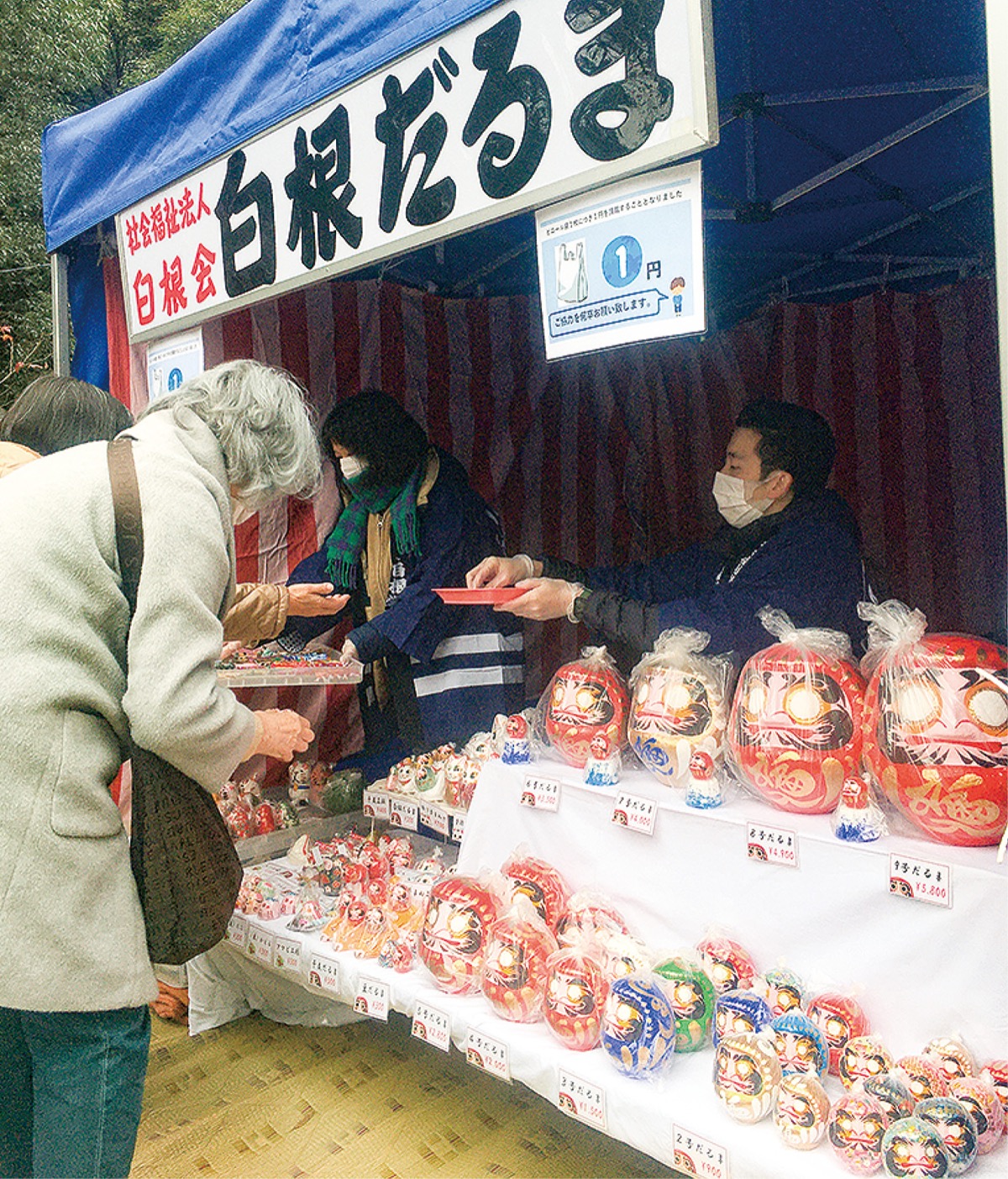 この日、会場には新井町にある障害福祉サービス事業所「風の丘」が出店。同所で働く知的障がい者らが手掛けた「白根だるま」が販売され、人気を集めた。