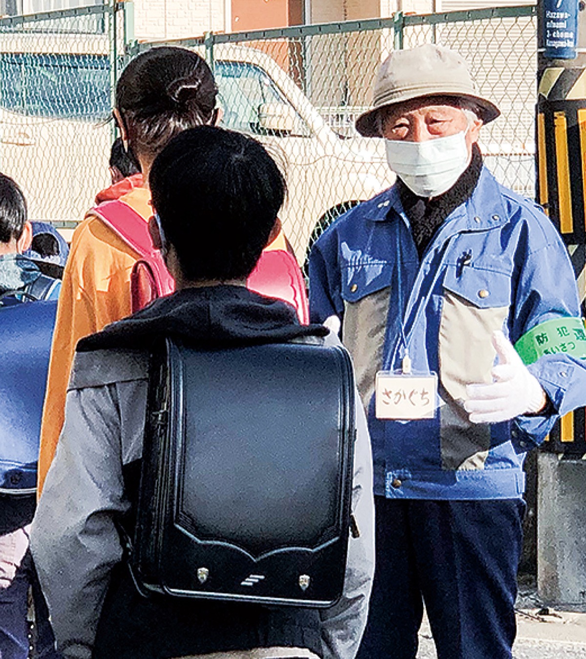 現在も腕章を付けて、車の往来の多い交差点に毎日欠かさず立つほか、学校区内を約1時間歩いてまわっている。坂口さんは「地域の人と話すのが原動力です」と笑顔で話した。