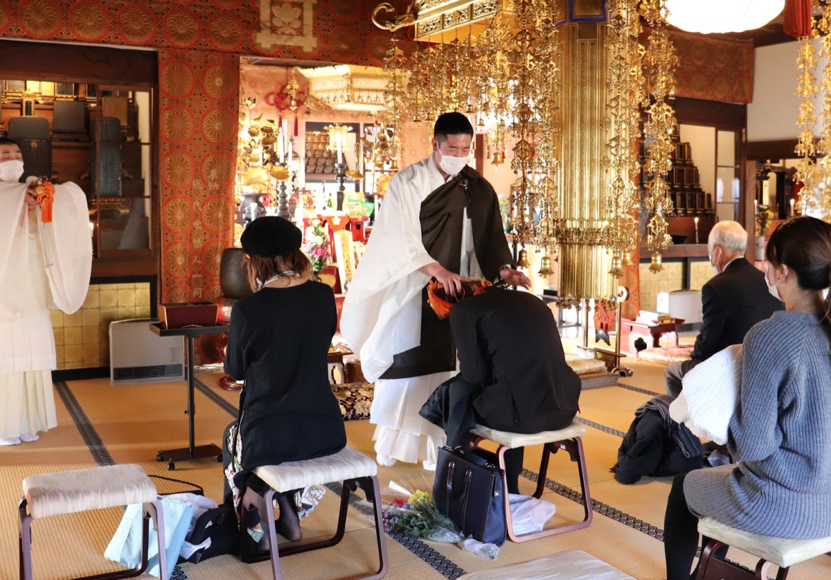 導師を務めた日比宣仁副住職は法要の最後、参加者に向けて「はじめての開催から3年、毎年試行錯誤を重ねながら法要を行っている。来年、再来年、ひいてはお寺が続く限り続けていくことができれば」と挨拶した。