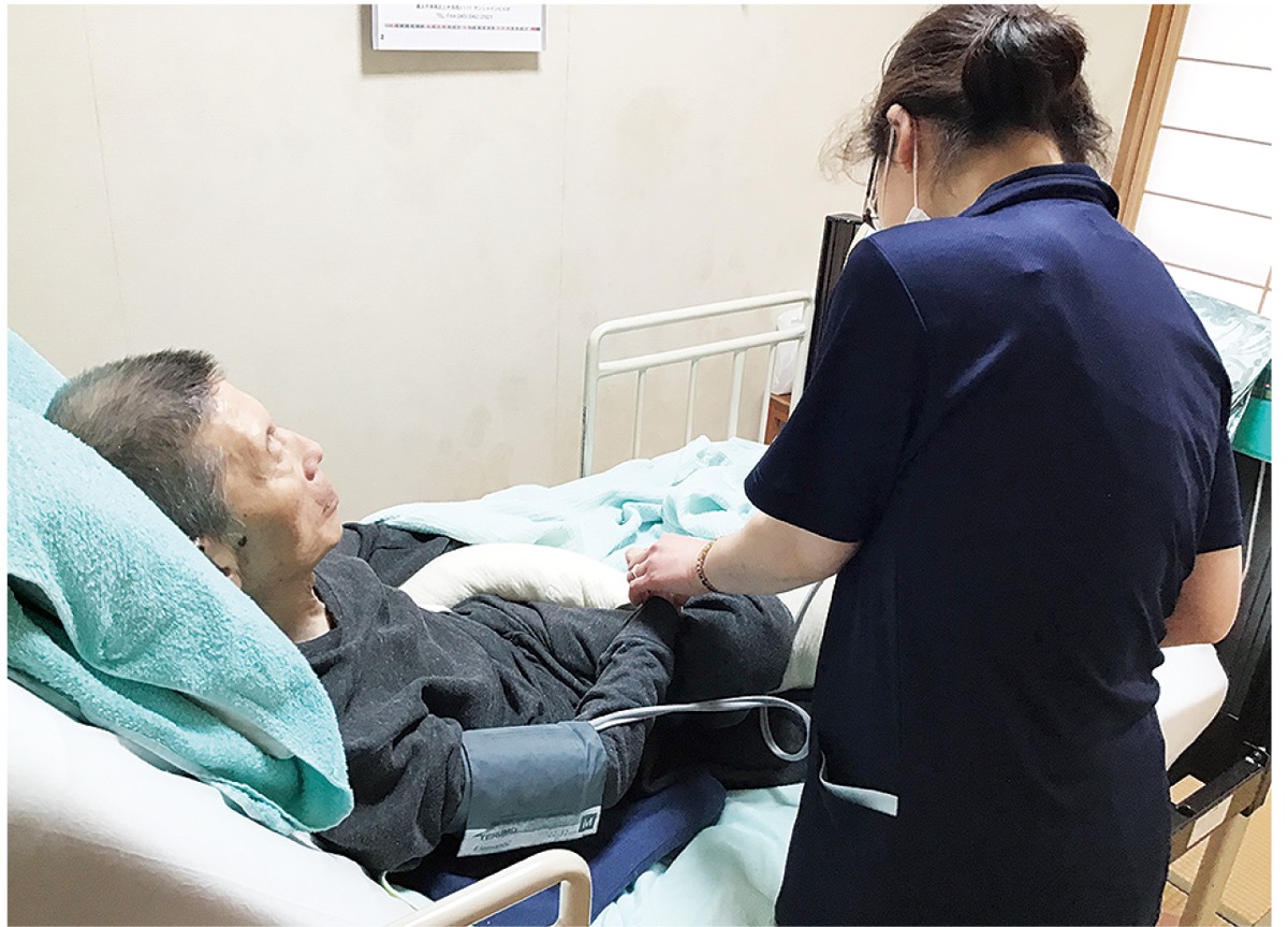 慣れ親しんだ環境で、安全に安心して療養生活するこの形を実現する上で訪問看護は重要な役割を果たす。訪問看護スタッフは主治医の指示に基づく病状観察、酸素療法・吸引など医療機器の管理・床ずれ予防・処置、フットケアや口腔ケア、身体の清拭、入浴介助など日常生活の支援、嚥下リハビリテーションや拘縮予防といった機能回復支援から、家族への介護支援・相談など幅広く対応する。「本人・家族を尊重し、『その人らしく生活すること』を支援する看護を目指しています」とスタッフ。