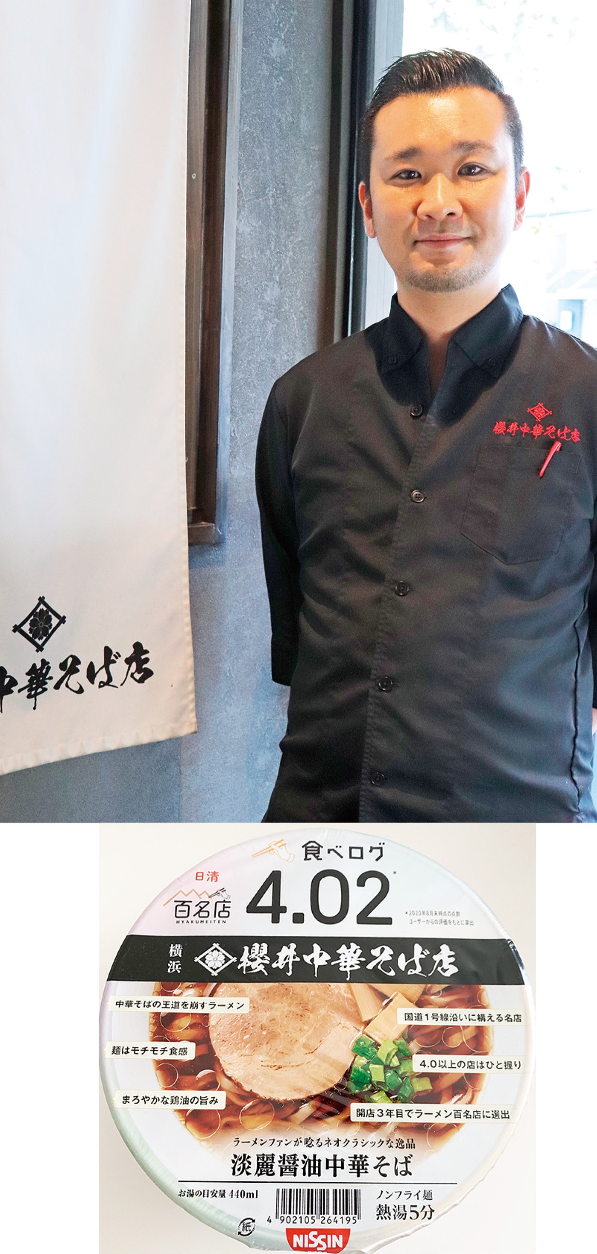 同店は、戸塚区出身の櫻井店主が2017年にオープン。開店わずか3年目には、国内最大級のグルメサイト「食べログ」内でユーザーから高い評価を集めた上位100店舗をまとめる「ラーメン百名店」に選出された。「中華そばの王道を崩すラーメン」を信条に提供されている同店の中華そばは、もちもちの食感にこだわった手揉みの縮れ麺と、まろやかで深い味わいに仕上げた淡麗醤油スープのバランスが特徴。その特徴がカップラーメンになってもできる限り再現できるよう、櫻井店主自ら監修を務め、10回以上の打ち合わせを重ねながら、納得の一品を作り上げた。