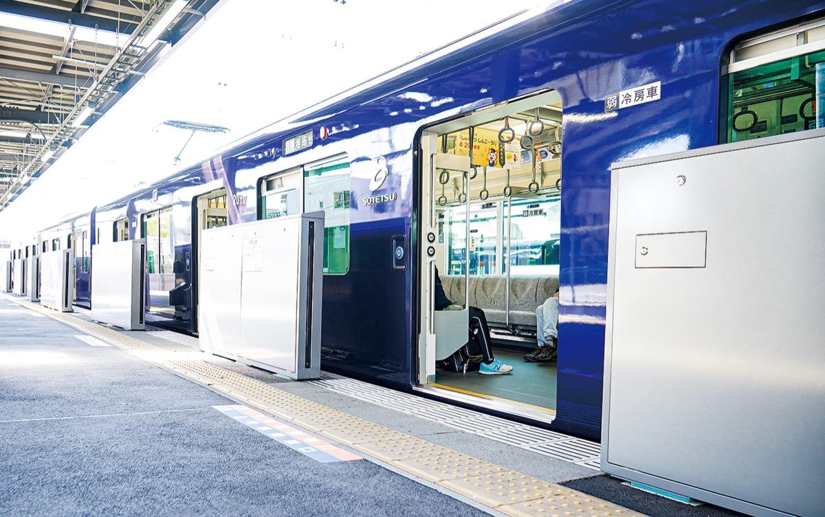 相模鉄道(株)では17年秋に22年度末までに全ての駅にホームドアを設置する計画を発表。1日の平均乗降人員が10万人を超える駅や主要駅から整備が進められ、17年に横浜駅にホームドアが設置されたのを皮切りに、19年には相鉄とJR東日本の相互直通運転が開始されたことに伴い開業した羽沢横浜国大駅、21年には二俣川駅、大和駅、湘南台駅に設置が完了し、すでに運用が始まっている。