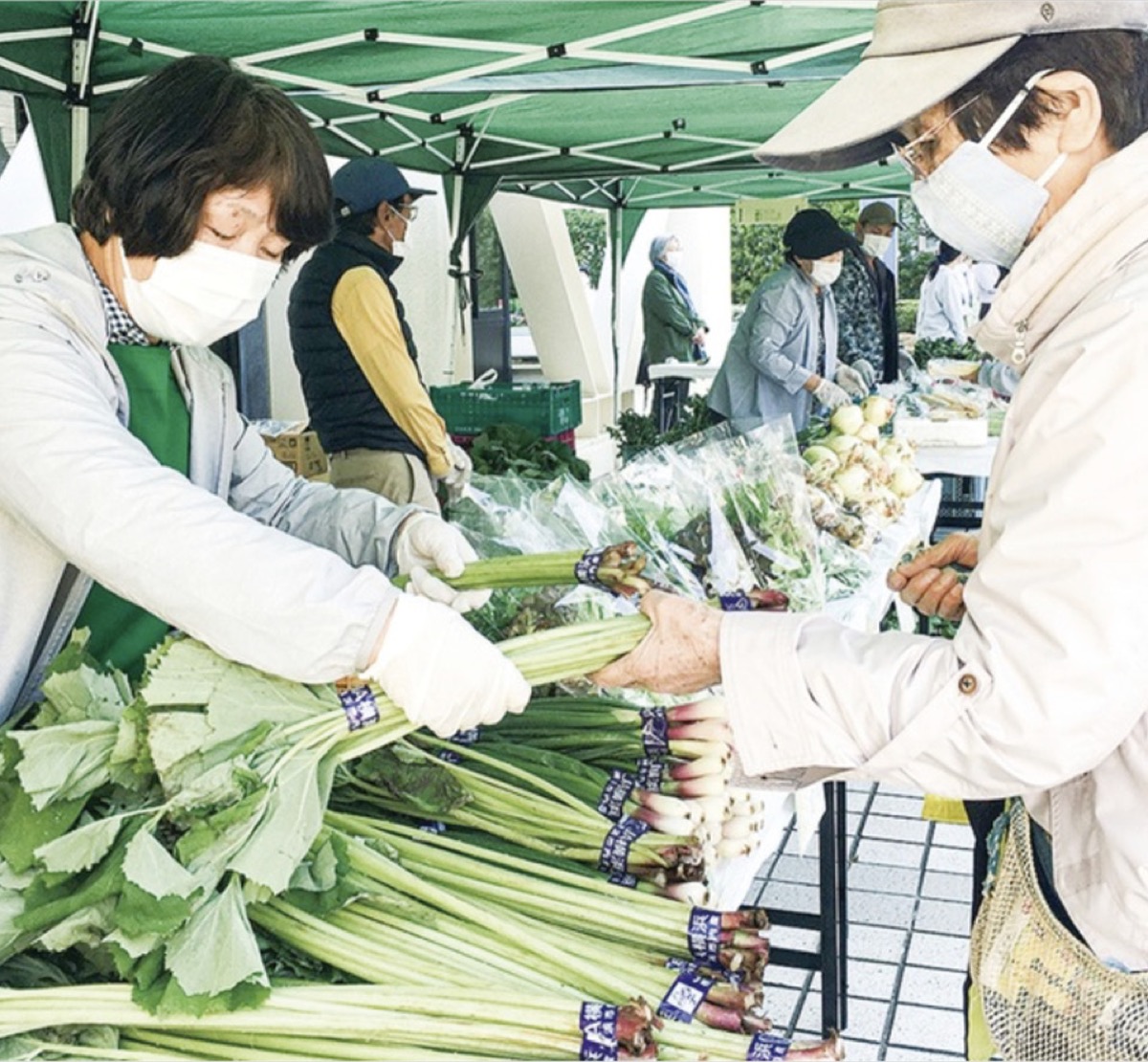 川島町の3軒の農家が育てた新鮮な地場野菜が並ぶ「まちなか農家さんの『ほどがや朝市』」が5月28日(金)に区役所前広場で催される。小雨決行・荒天中止。