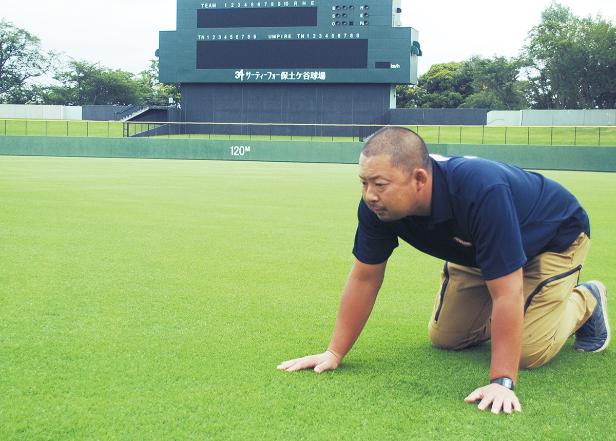 少年時代から植物や自然に興味を抱き、ガーデニングの専門学校に進学。卒業後、現職に就きサッカースタジアムを中心に管理業務に従事し、3年前に中学時代に投手としてマウンドに立った経験もある保土ケ谷球場の整備を担うグラウンドキーパーに着任した。