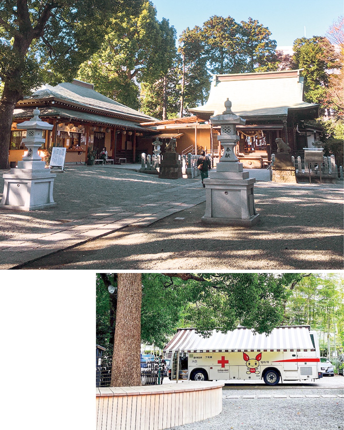 同神社で権禰宜を務める平岡理恵さんは「川崎市内の神社で実施された際には『初めて献血に参加する』という方も多かったとお聞きしている。身近な神社が会場となることで献血のハードルがさがればと考えている」と話す。献血協力者には来場記念として「神社de献血」仕様の「御朱印」とオリジナルスタンプ帳が配布される。