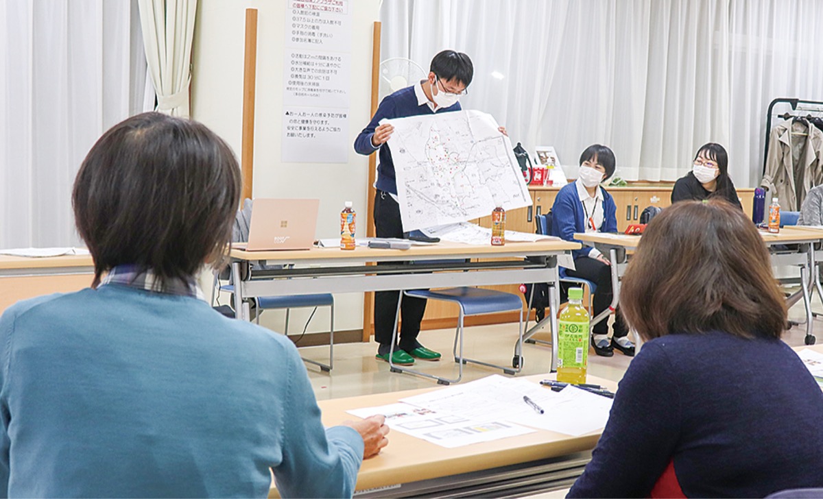 便利マップの作成は「ほっとなまちづくり」計画の一環。このほど行われたミーティングでは、計画に協力する横浜国立大学の学生らが初めて対面で参加し、マップの形やデザインなどの提案を行った。
