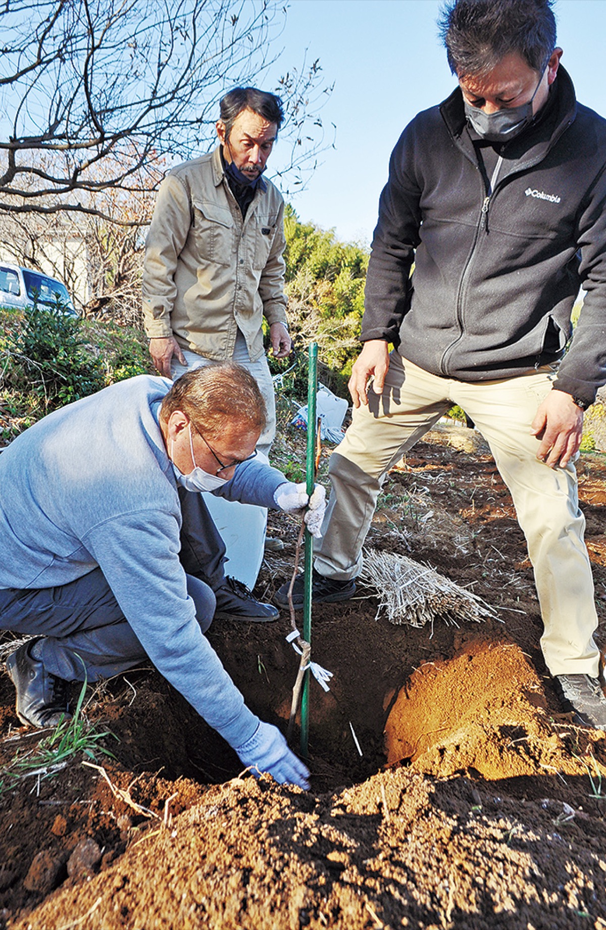 昨年末には新井町の畑に、三村さんの指導を受けながら苗木を植栽。この畑ではかつて皇室に献上された歴史をもつ由緒ある茶葉が栽培されていた。斜面地で水はけが良く、ぶどうの栽培にも適した土壌で、皇国葡萄酒の原材料に用いられていた「アジロンダック」「デラウェア」など、4種の苗木を植え付けた。