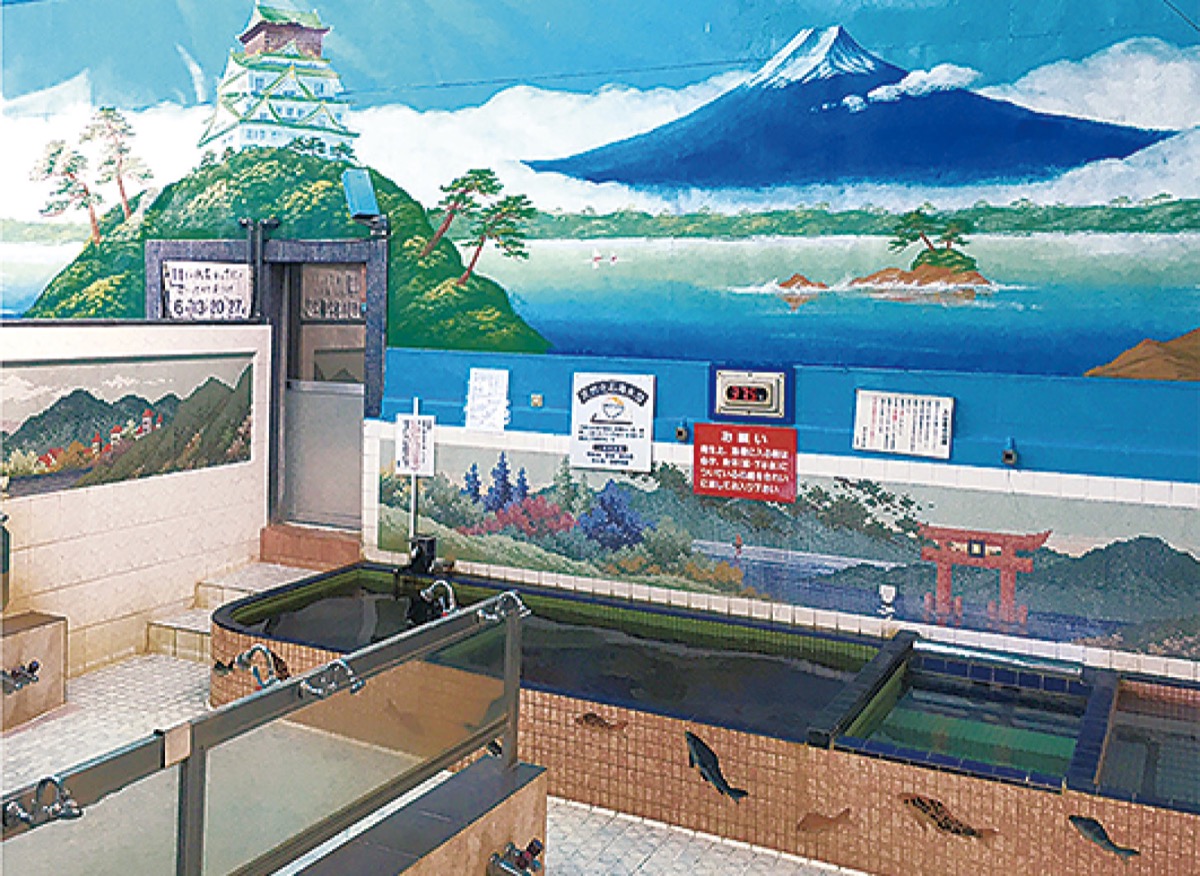 仏向町に「温泉」があることをご存じだろうか。「横浜温泉黄金湯」を今回は本紙記者が実湯レポートする。番台で入浴料を払い脱衣所に入るとそこに広がるのは昭和の風情が残る光景。浴室に入ると雄大な富士山と城が描かれた見事なペンキ絵が目に飛び込んで来る。お湯はやや褐色がかった「黒湯」。源泉は16・8℃。毎日、釜場に角材など薪をくべ、沸かす湯を楽しみに毎日訪れる常連客も数多い。
