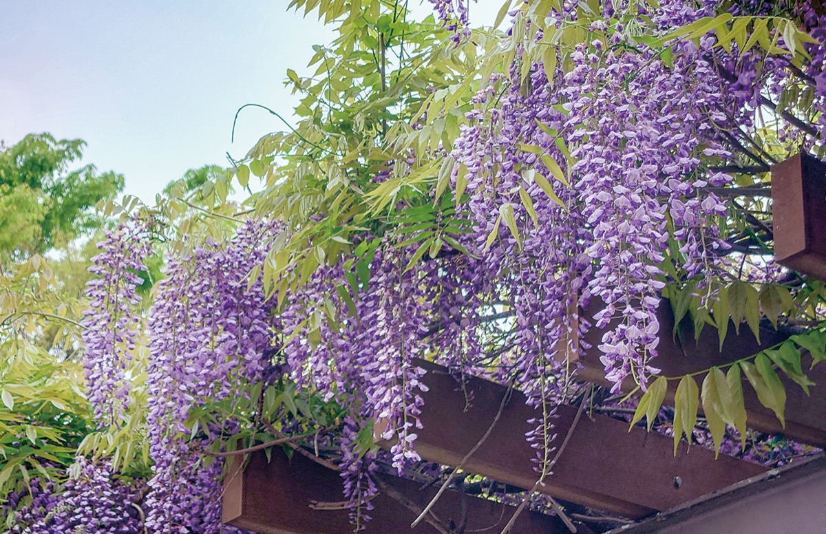 洪福寺松原商店街から近い宮田町公園=宮田町2の159=で、藤棚が見ごろを迎えている。