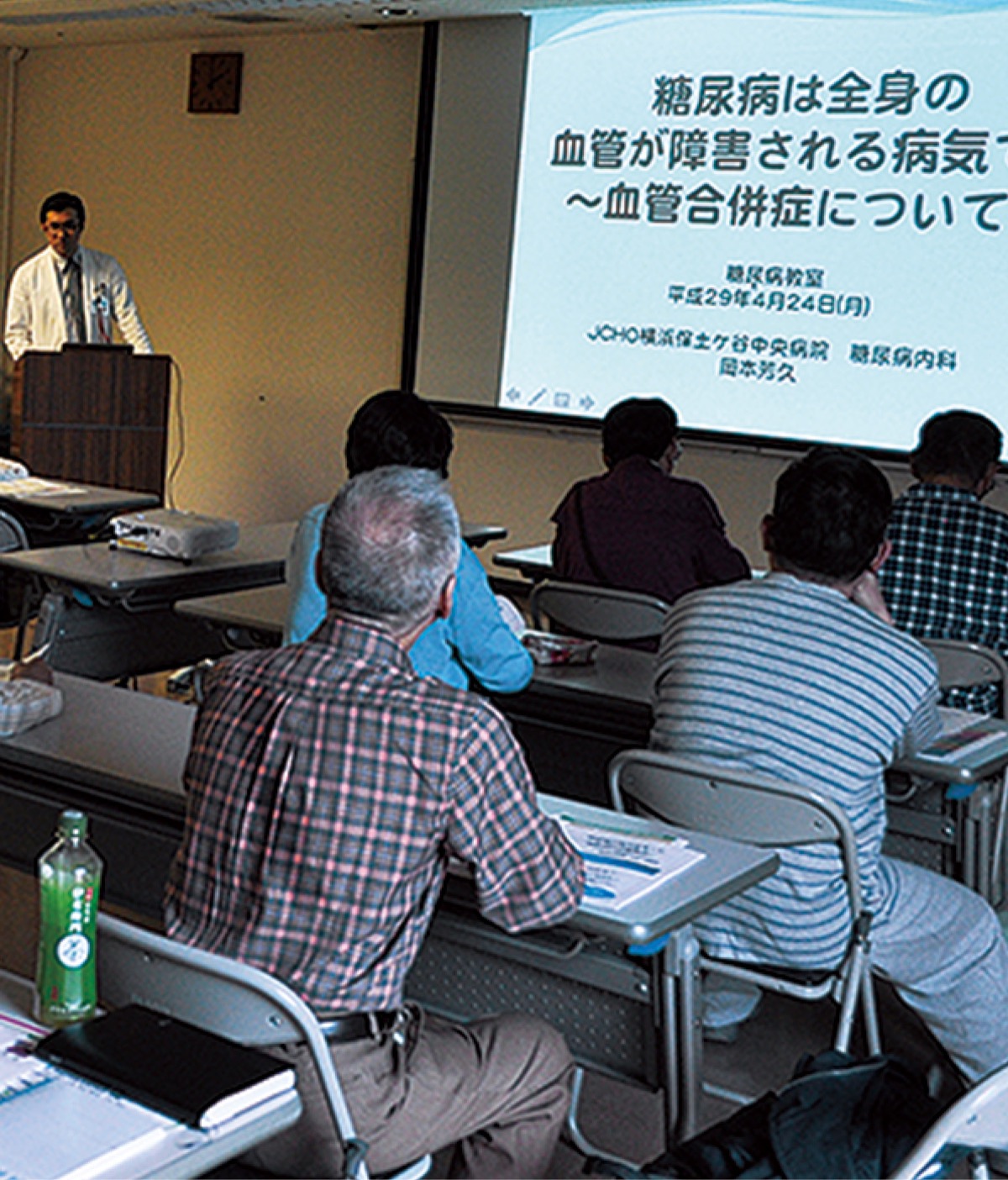 釜台町にある「横浜保土ケ谷中央病院」(池秀之院長)で5月26日(木)、27日(金)の2日間、「糖尿病」をテーマにした講座が開かれる。両日とも午後1時から(0時45分から受付)で、医師や看護師、栄養士、薬剤師、臨床検査技師、理学療法士で組織する「糖尿病チーム」のスタッフが登壇する。
