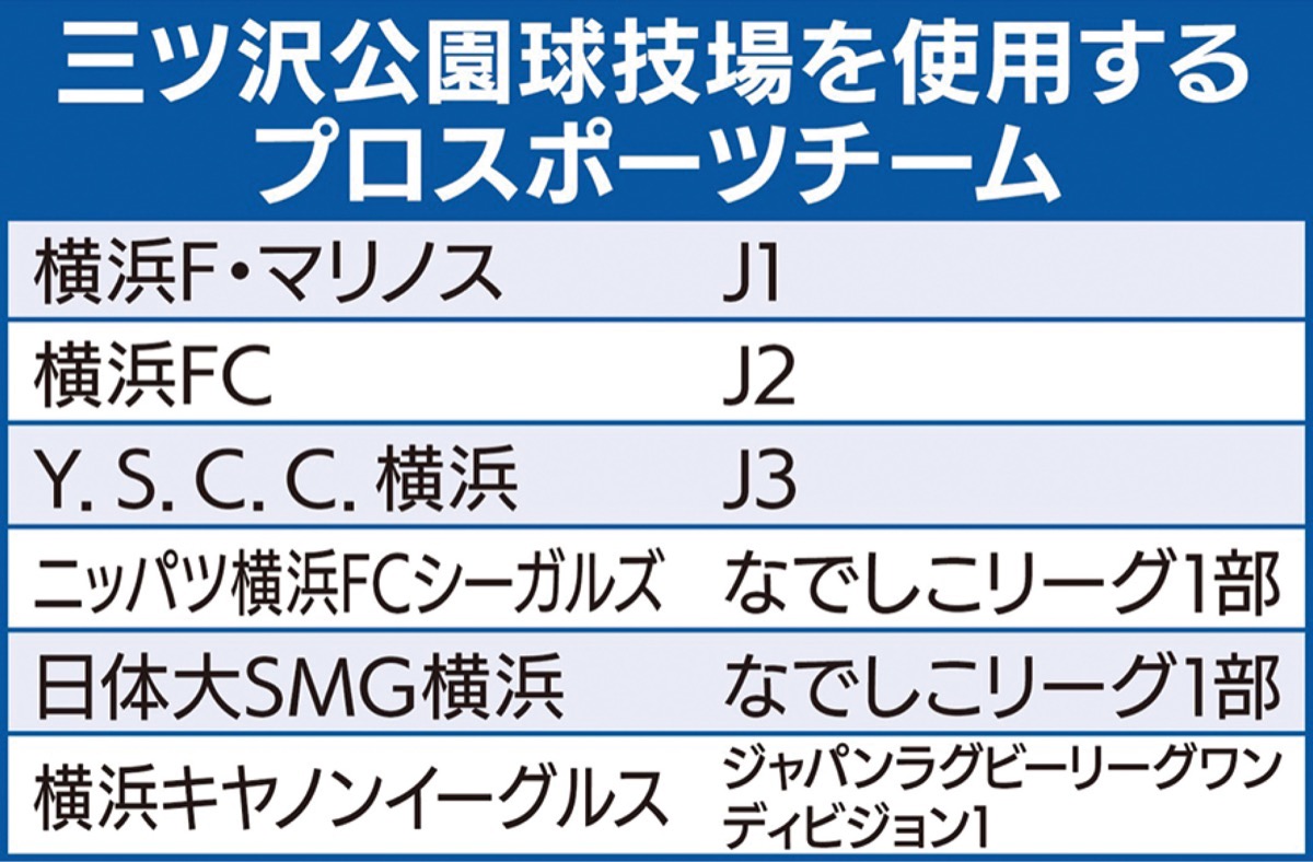 三ツ沢球技場は1955年に建設され、64年の東京五輪ではサッカー会場として使用された。現在は市民の利用に加え、横浜FCや横浜F・マリノス、YSCC横浜といったJリーグをはじめ、ラグビーリーグワンの横浜キヤノンイーグルスなど6つのプロスポーツチームが使用。年間を通じた稼働状況は、国内の球技場の中でも年間を通して突出している。