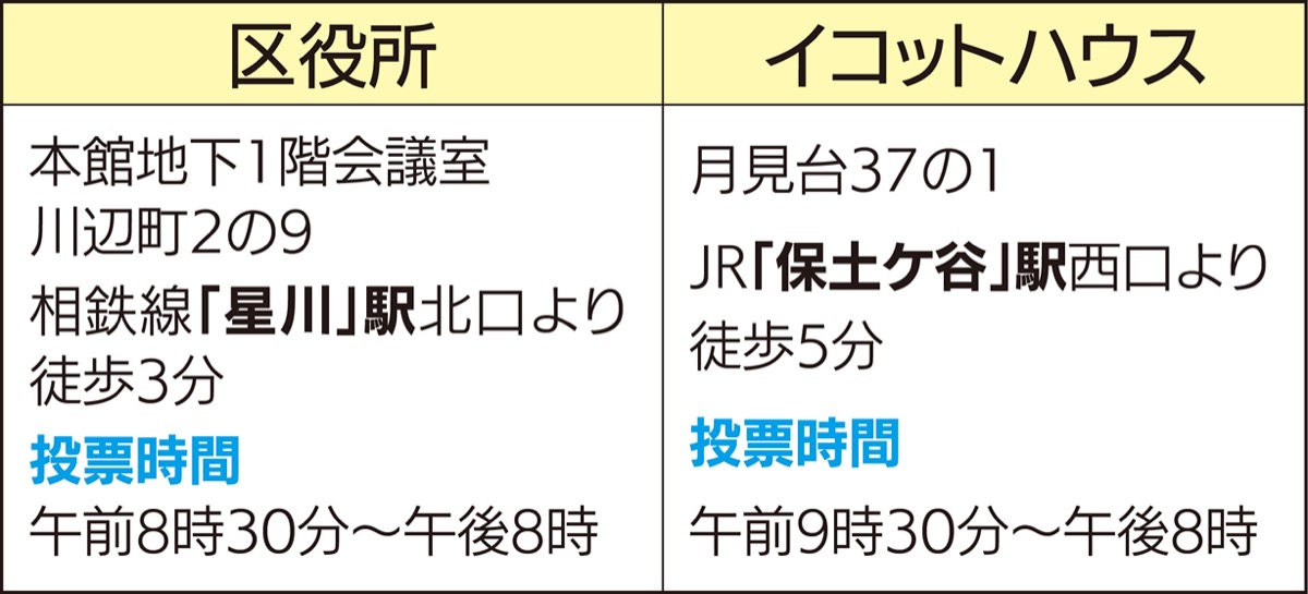 7月10日に投開票される参議院議員選挙の期日前投票が始まった。期日前投票所は区役所本館地下1階の会議室と月見台のイコットハウス(7月2日から)に開設。両会場とも9日(土)まで投票を受け付ける。投票時間は区役所は午前8時30分から午後8時まで、イコットハウスは午前9時30分から午後8時まで。投票日が近づくにつれて期日前投票所の混雑が予想されるため、区選挙管理委員会では早めの投票を呼び掛けている。問い合わせは区選管【電話】045・334・6206。