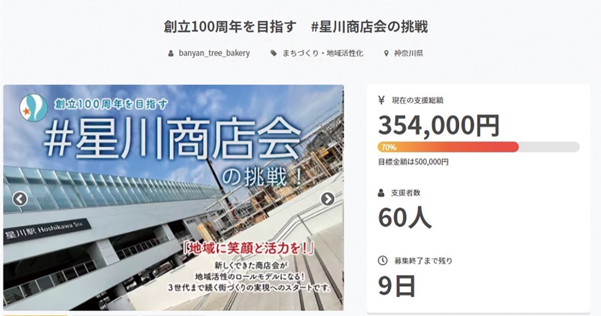 今春発足した星川商店会が実施しているクラウドファンディングの期限が8月末に迫っている。