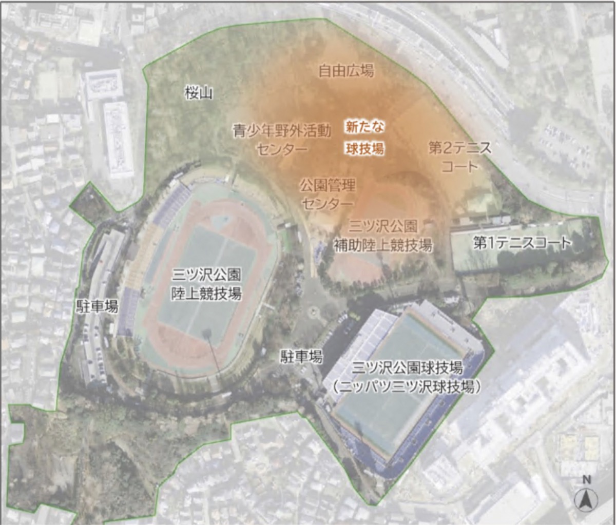 建設場所の候補地とされているのは、公園北側の補助陸上競技場や第2テニスコート、青少年野外活動センターなどがあるエリア。現在の球技場と陸上競技場は残したまま活用を続け、老朽化した他施設もリニューアルする方針だ。また財源についてや建設候補地にある施設の代替機能確保などの課題についても検討していくとしている。