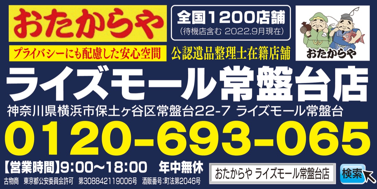 横浜国立大そばに新しく誕生した商業施設「ライズモール常盤台」2階の「おたからや」では、新規オープンを記念して各種買い取りを強化している。