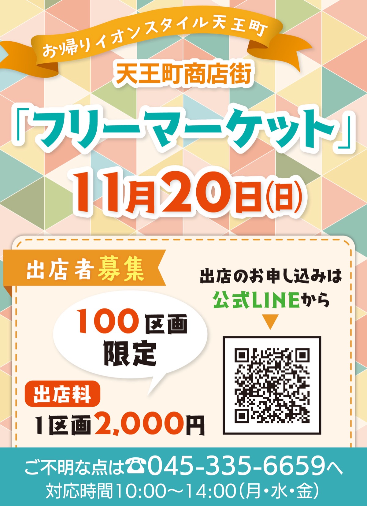 安田理事長は「当商店街の代名詞とも言えるフリマが3年ぶりに復活します。イオンスタイル天王町が開店することもあり、商店街としても街に賑わいを生み出していきたい」と話している。
