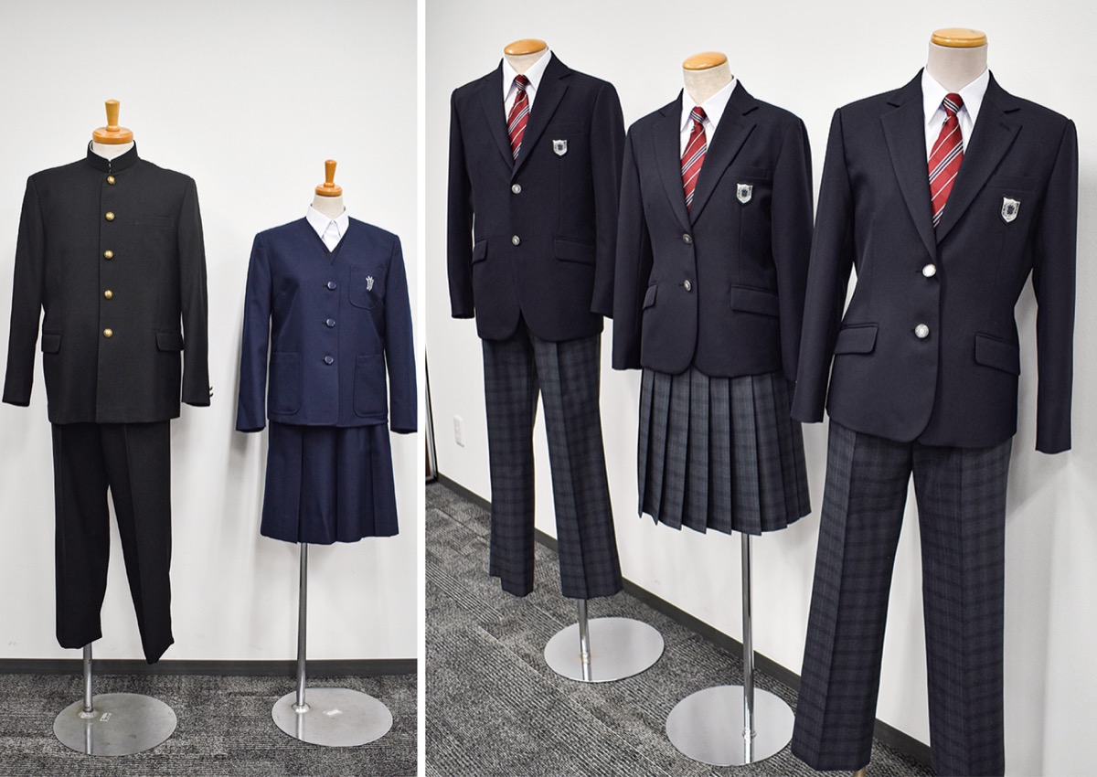 新しいデザインの標準服は来年4月から使用開始となるが、今の在校生は従来のものも引き続き着用できる。