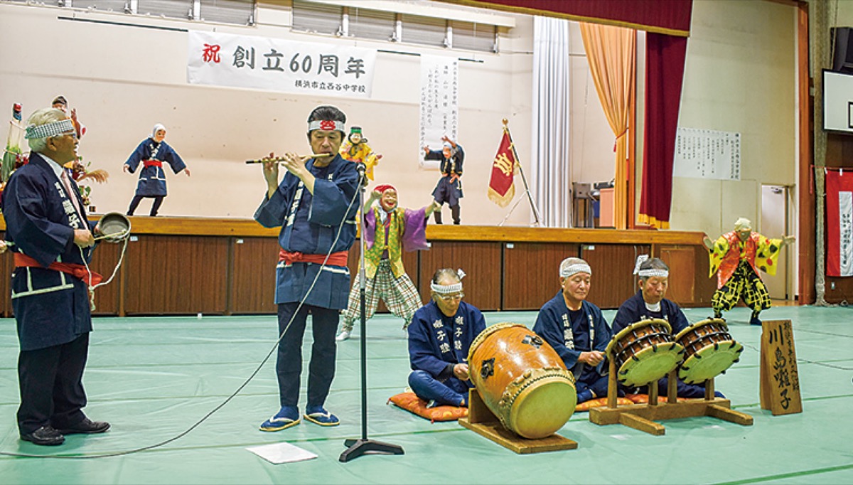 今年5月1日の開校記念日で創立60周年を迎えた西谷中学校。10月22日に行われた記念式典では、市民ランナー・山口遥さんによる記念講演や川島囃子保存会によるお囃子の披露など、卒業生が祝いの場に華を添えた。