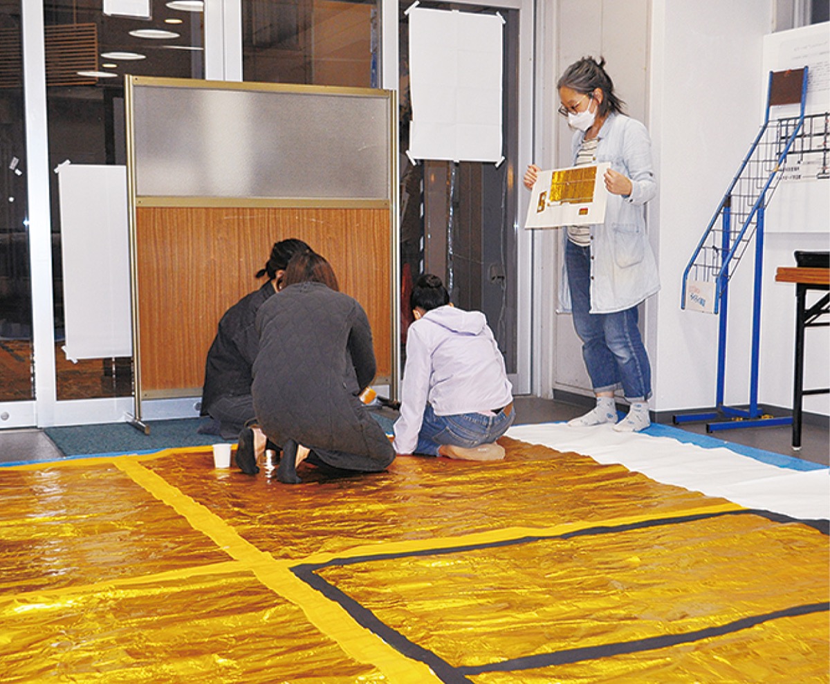 子どもたちの晴れの舞台を商店街や地域住民らが支えている。舞台の装飾などは商店街関係者や保護者らが手作り。連日、工具や筆を手に仕上げている。
