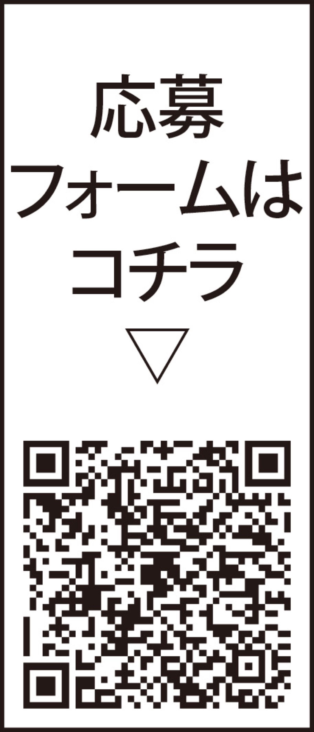 応募は専用の応募フォーム(下記二次元コードから)または応募用紙(ホームページからダウンロード)に必要事項を記入し、WEB・郵送・窓口持参のいずれかの方法で申し込む。