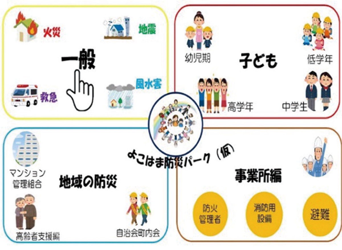 市が創設する「(仮称)よこはま防災パーク」は「いつでも、どこでも、誰でも、災害へ備えるうえで必要となる知識や技術を気軽に学び、市民一人ひとりの防災力が向上して、いざという時の適切な行動につなげることで自助の裾野を広げる」ことが目的。