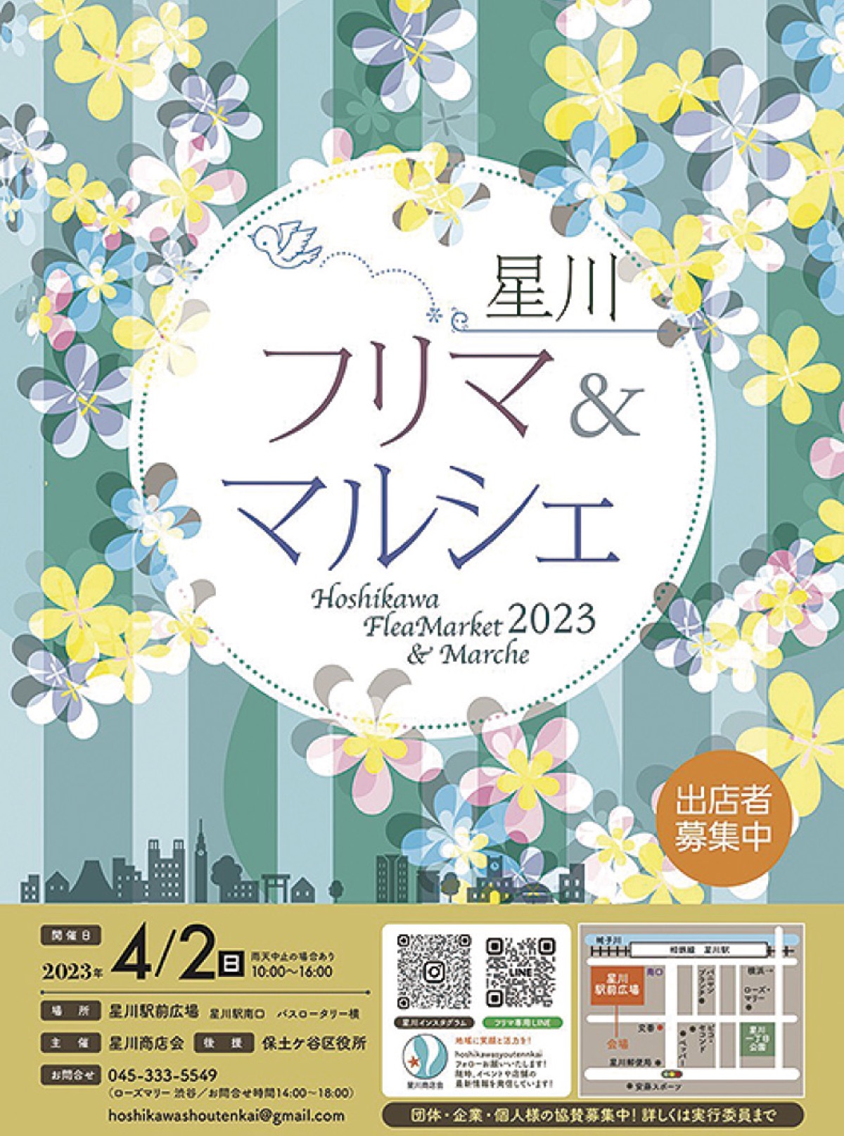 マルシェでは星川商店会加盟店舗による縁日やパンの販売が行われる。現在、フリーマーケットの参加者を募集中。出店申込みは2次元コードからLINEアカウントへの友だち追加が必要。定員に達し次第終了。