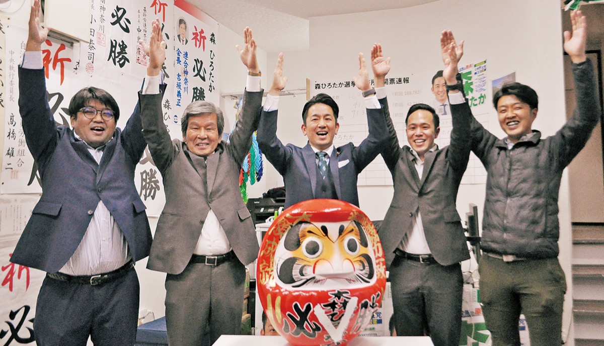 森氏は子育てに関わる費用軽減や地域交通の拡充などを訴え、2度目の当選を果たした。午前0時頃に当選の報を受けた森氏は事務所に集まった支援者らとともに万歳。「今回の選挙戦は『直接対話』をテーマに戦ってきた。課題は山積している。顔を合わせて聞いてきた声を受け止め、4年間かけて前進させていきたい」と話した。