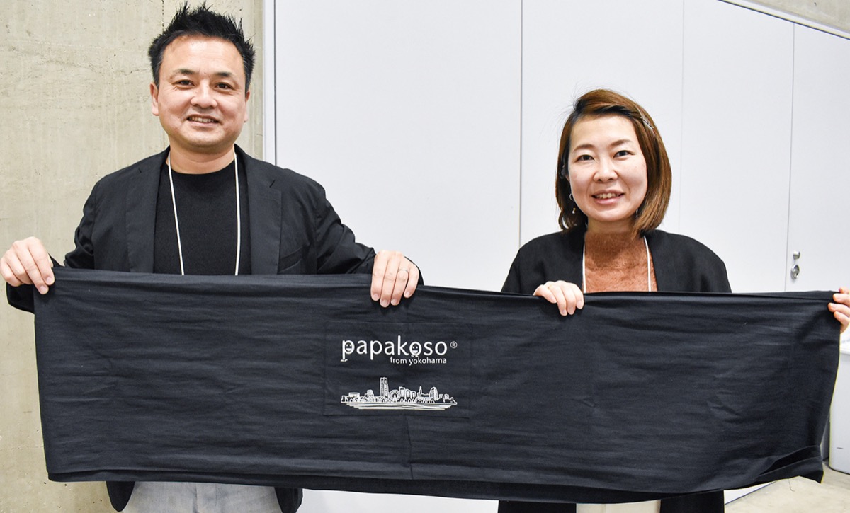 子育て応援ブランド「papakoso」を運営する、常盤台の(株)ワンスレッドは、横浜の地場産業「捺染」「縫製」の技術を生かした抱っこひも用の一本帯「濱帯(はまおび)プロジェクト」に取り組んでいる。