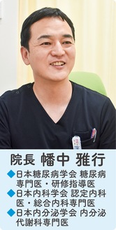 そうした患者に対し「医療は信頼関係が何よりも大切。まずは何を求めて来院されたかをくみ取り、安心して遠慮なく相談できるような問診を心がけています」と幡中院長。治療に際しても患者一人ひとりの本質を見極め、無理せず継続できる治療方法を提案してくれる。血糖値、HbA1c、尿検査等は院内検査で当日に結果を案内してくれる。