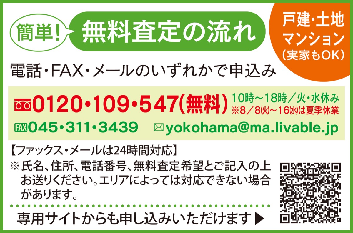 「子どもは独立したし、老後は小さくても快適な家に住みたい」「相続対策で家の正しい価値を知りたい」。東急リバブル横浜センターでは、持ち家や土地、相続した実家などの価値や評価を行う「不動産の無料査定」を実施している。