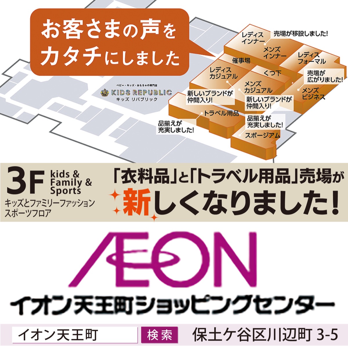 昨秋、開業した「イオンスタイル天王町」(中野公現店長)の2、3階の売り場がリニューアルされた。来店客の声や世相を受け、「衣料品」と「トラベル用品」を扱う売場を拡充。開業1年を前に、来店する多くの人が「ワンストップショッピング」を実現できる環境を整え、「買い物をしやすい店づくり」を追求した形だ。