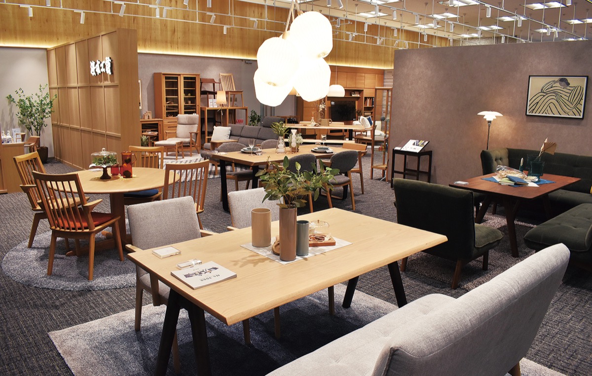専門店を通しての販売が多かった同社にとってリビングやダイニングのセットから学習机まで「全ての商品を見て触って確かめられる場」としての役割を担っている。