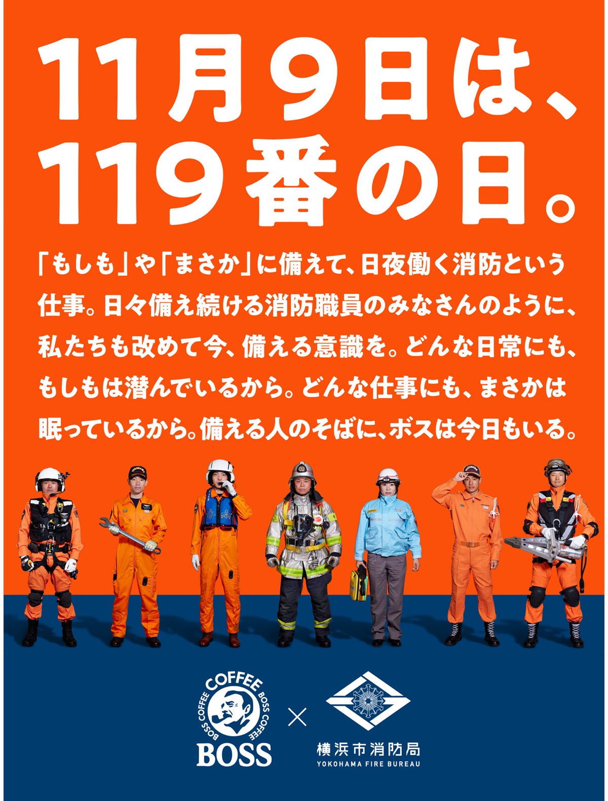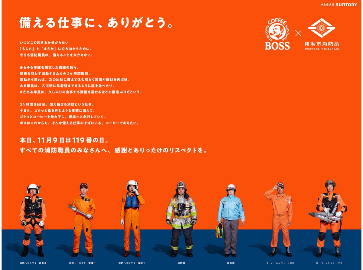 「119」に合わせサントリーBOSSと横浜市消防局がコラボ