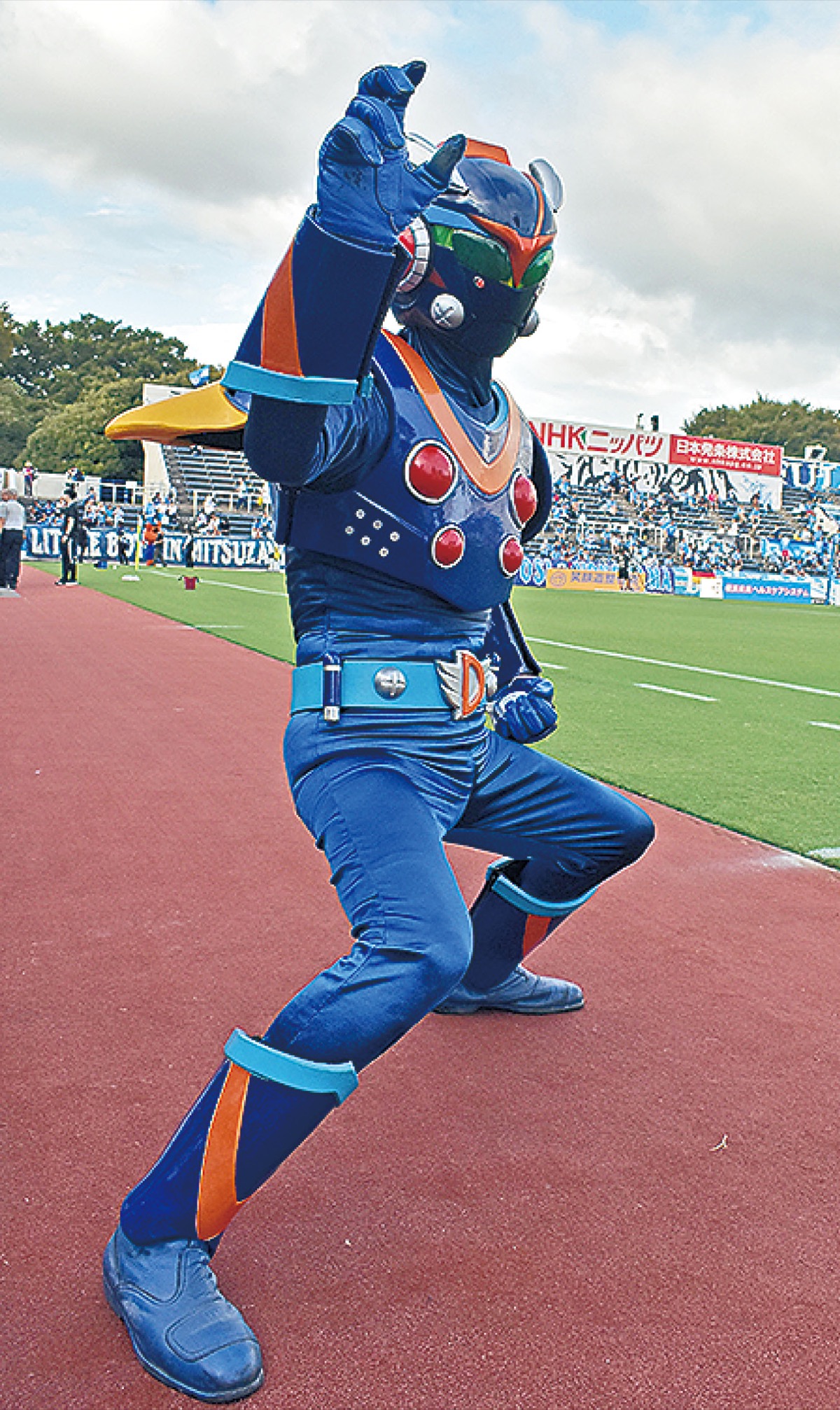 8月の試合にも来場したご当地ヒーローの帷子戦士デザイヤーは、3対1で勝利した前節の試合終了後、自身の公式X(旧ツイッター)で「このポスト(投稿)に100いいねがもらえたら、横浜FC応援動画を毎朝1本アップします」と宣言。すぐさま「いいね」が集まり、公約通りきょう23日から試合当日まで毎日動画を公開する。