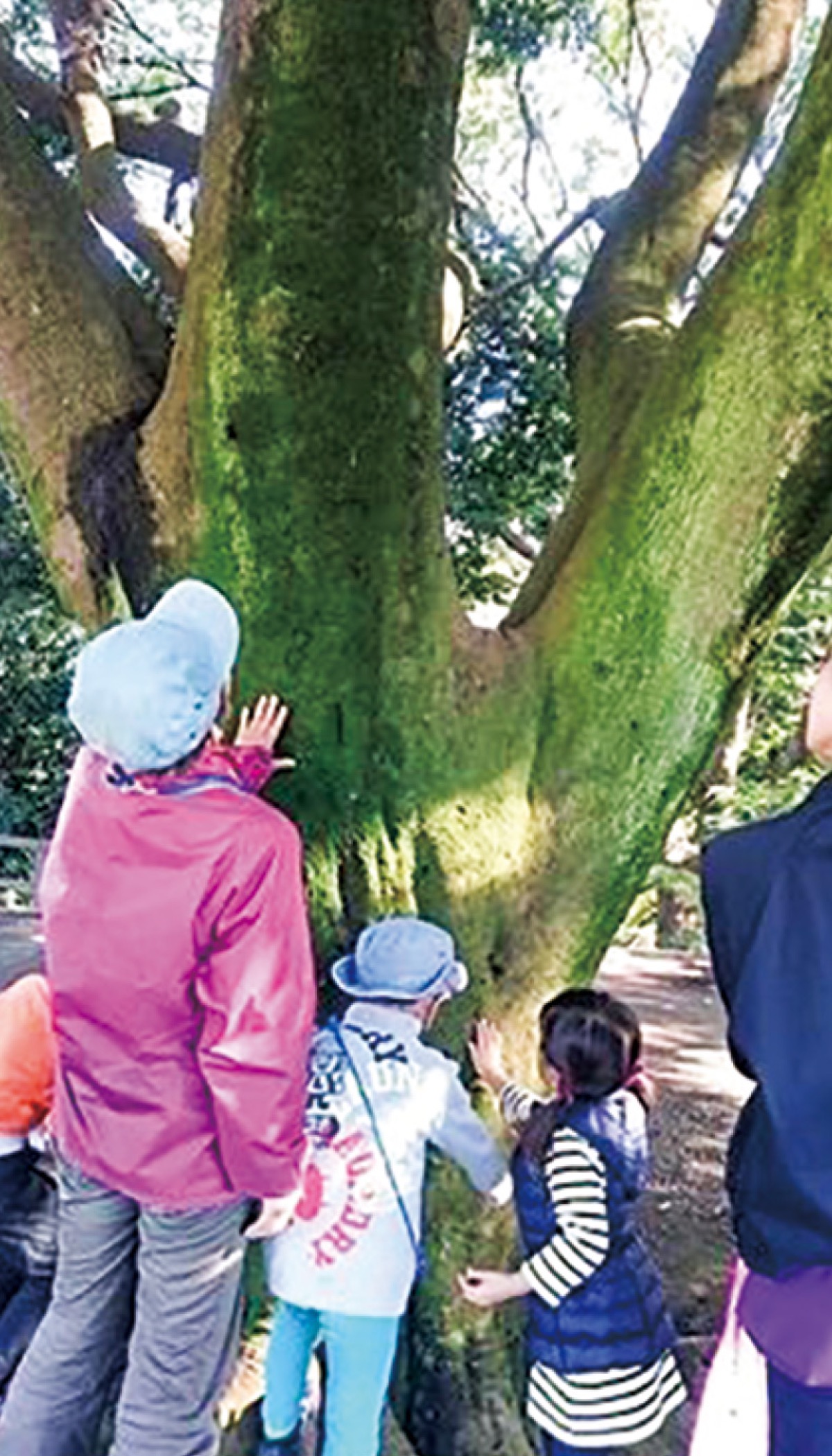 落ち葉や木の実で遊んだり、風を感じたり自然と人とのつながりに気づいたりしながら楽しく公園内を散策する。ネイチャーゲームなどによる自然体験の後、SDGsを自分の暮らしに引き付けて考える振り返りの時間もある。