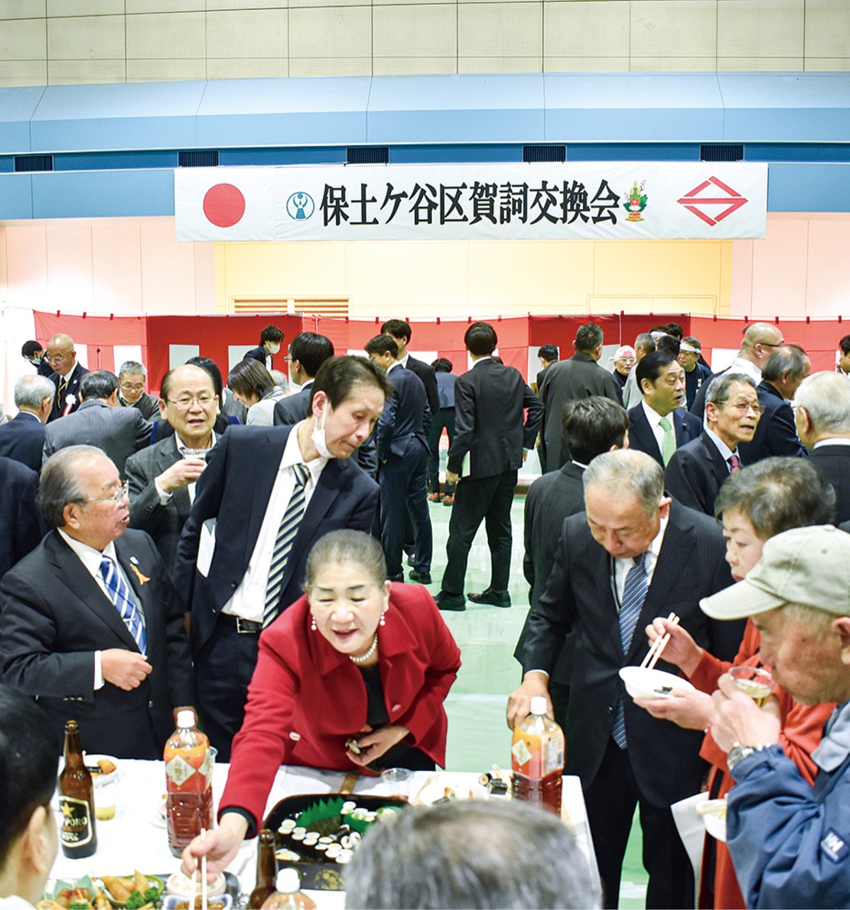 神部浩保土ケ谷区長は「昨年は各地域でお祭りや運動会など、区民の皆さんが主役となるイベントが4年ぶりに多数開かれ、街に活気と賑わいが戻ってきました。3年後に迫る区制100周年を契機に、この歴史ある保土ケ谷を区民の皆様と一緒にさらに盛り上げたいと思います」とあいさつ。保土ケ谷交通安全協会の板橋悟会長の発声で乾杯が行われると、各テーブルではにぎやかに歓談が行われていた。