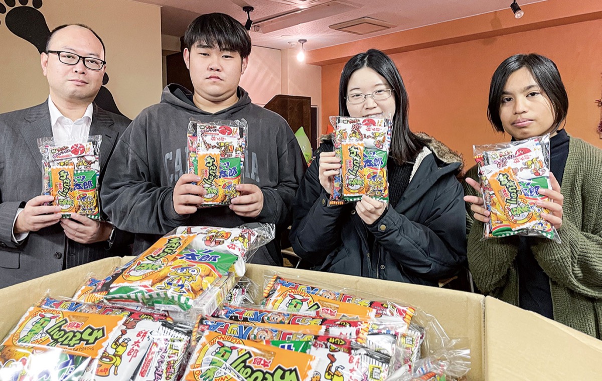 この取り組みは2016年から形を変えつつ続いているもの。当初は同クラブの創立50周年記念の奉仕事業として活動応援金を贈り、一時は炊飯器と米を定期的に送り、通所して受験勉強に励む利用者の空腹を満たしていた。コロナ禍以降は定期的にお菓子を寄贈し、次回は3月頃の予定。同クラブでは「お菓子が通所する方々のモチベーションアップに繋がれば」としている。