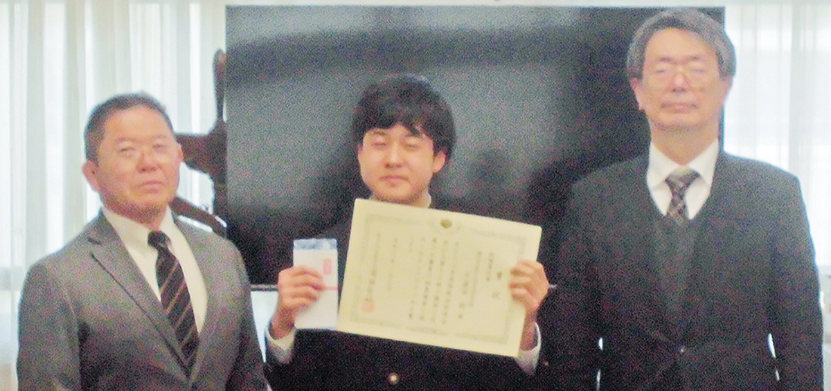 保土ケ谷税務署長賞に選ばれた小藤田さんの作品は、「税金は 国を動かす動脈だ 納めて創ろう良い流れ」。1月29日には、保土ケ谷税務署の高田哲好署長が同校を訪れ、小藤田さんに表彰状を手渡した。