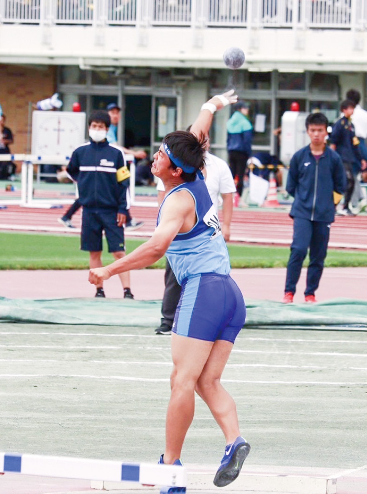 県総体は男子棒高跳で加藤佑弥さん(2年)、男子円盤投で成田卓登さん(3年)が優勝した。加藤さんは「競技の待ち時間が長く、体を冷やさないようにこまめにアップした」と振り返り、自己ベストに並ぶ4m80を記録した。成田さんは円盤投で45m20を記録。「円盤投の1週間前に行われた砲丸投は2位だった。何としても優勝したかった」と振り返り、悔しさを力に変えられたという。2人とも高校では初めての優勝で、喜びをかみしめた。