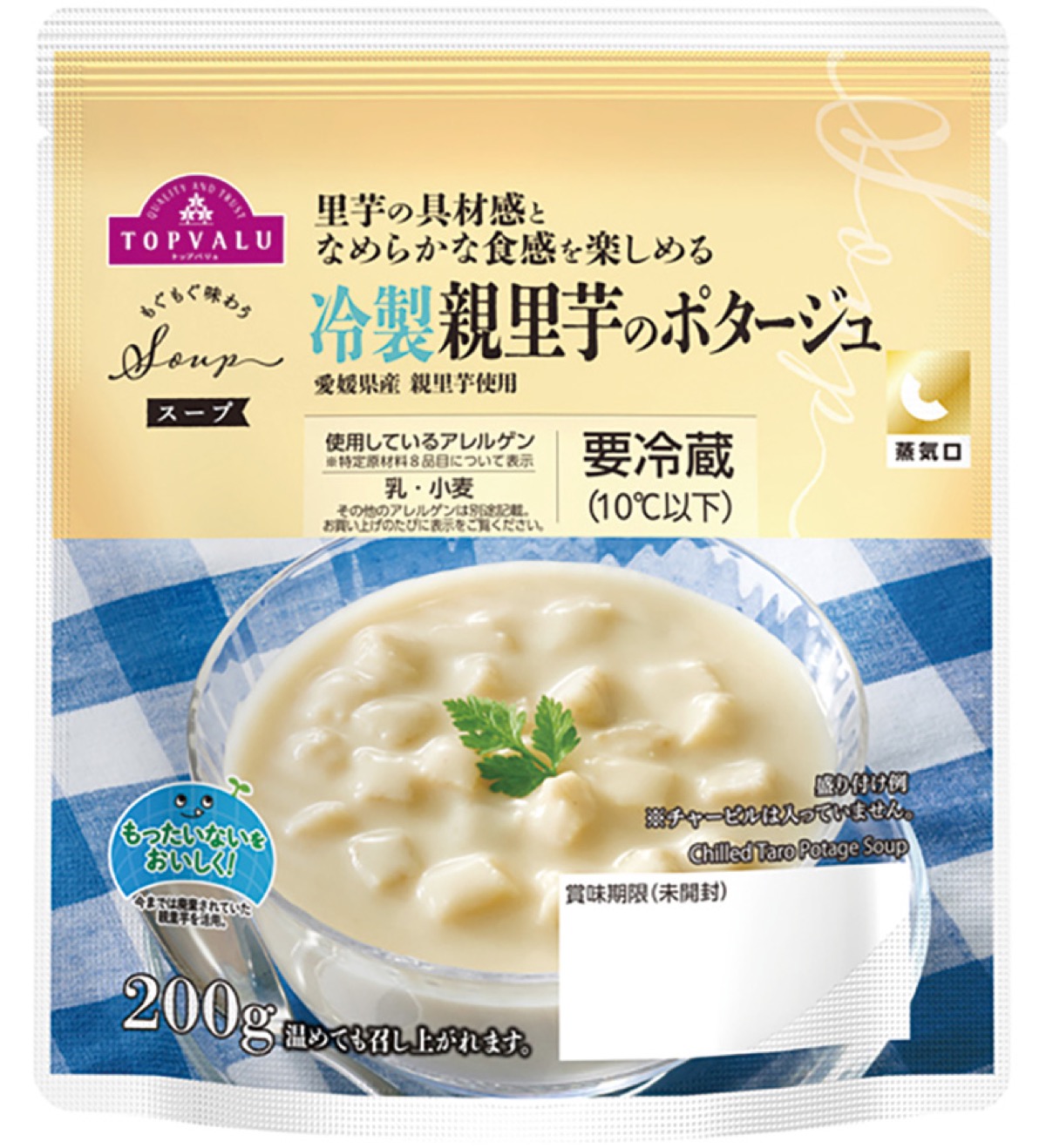 サプライチェーン全体での食品廃棄物・ロスの削減に向けた商品も多数品揃えされている。流通している里芋の元となる「親芋」は固く、調理に不向きとされ、収穫時にほとんどが廃棄される。この親芋も特徴を活かし「冷製ポタージュ」と「和風粥」のレトルト商品を開発した。