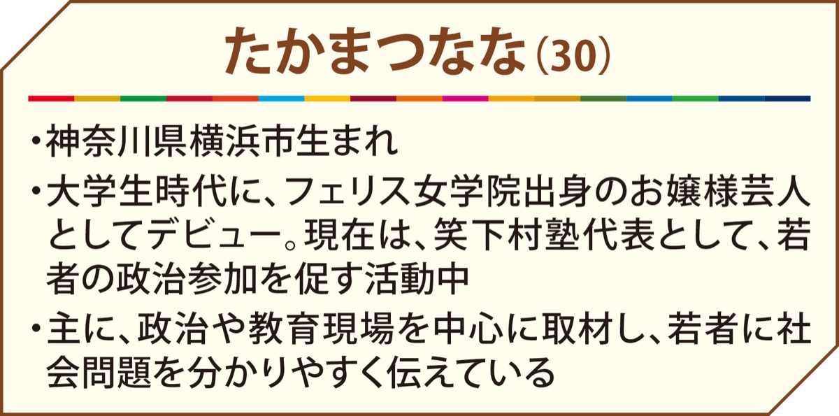 「笑下村塾という会社の代表として、全国の学校に笑いを通して社会問題を身近に伝える活動をしています。その中でSDGsについての出張授業を行い、未来を担う子どもたちに、主権者意識を付けたいと考えています。これは、社会問題を自分ごとにして行動する子を増やしたい思いからです。17の目標があるSDGsは、ある意味1つの『社会変革』でもあると考えています」