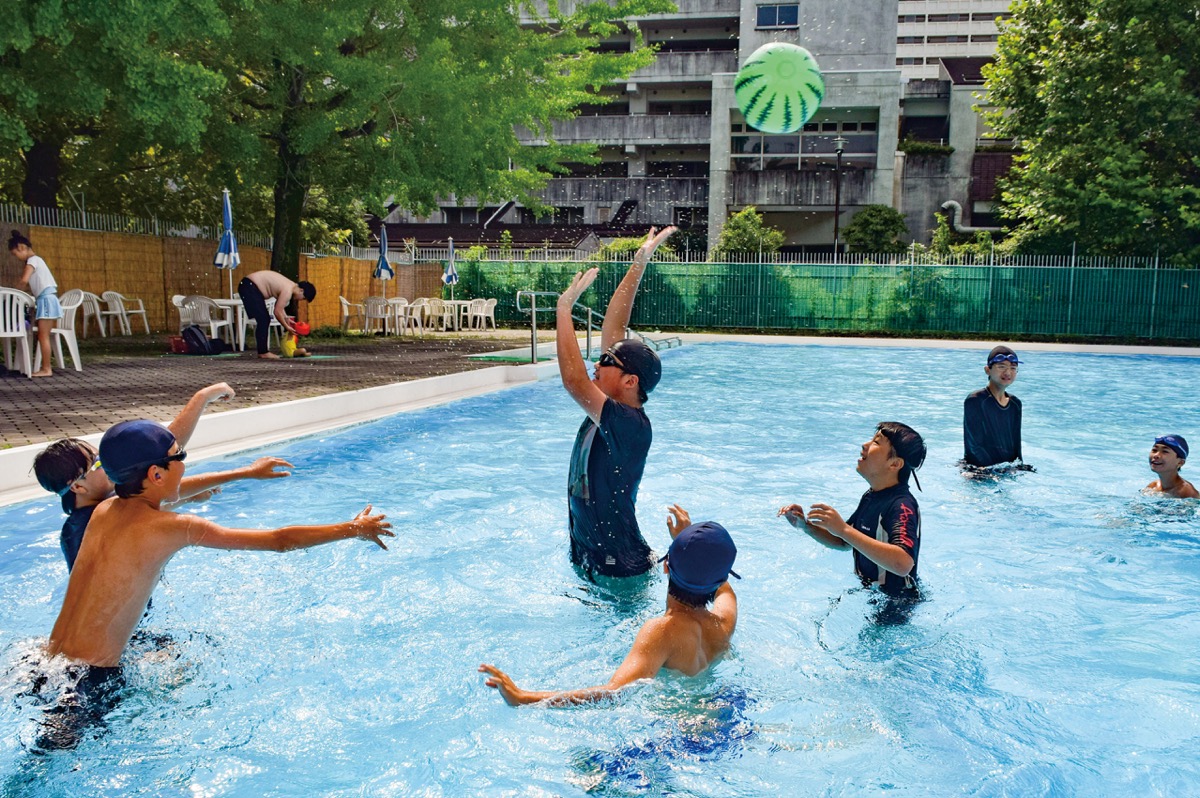 川辺公園プール(川辺町4の4)ではオープン前から周辺住民らの列ができた。グループで訪れた中学生たちは、浮き輪やビーチボールを持ち込み、楽しそうに遊んでいた=写真。平林義也さんと高井星汰さんは「水が冷たくて気持ちいい」「学校では浮き輪などを使えないから楽しい」と話した。同プールは9月1日まで。午前9時から午後6時。1時間当たり25mプール100円、子ども用プール60円。