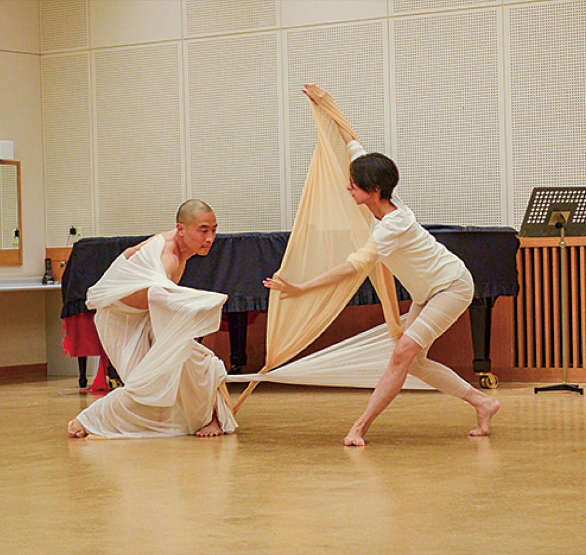 初演はロシアがウクライナ侵攻を開始した2022年。苫野さんは「相反するものの中心点を感知することが対立の解決につながるのでは」という思いで「白鳥」をテーマに作品を創作した。「精神性が際立つ作品にしたかった。手の動作一つとっても、肉体や精神の研鑽を積み重ねてこられた尾本先生にしか出せない表現が見どころ」と話している。