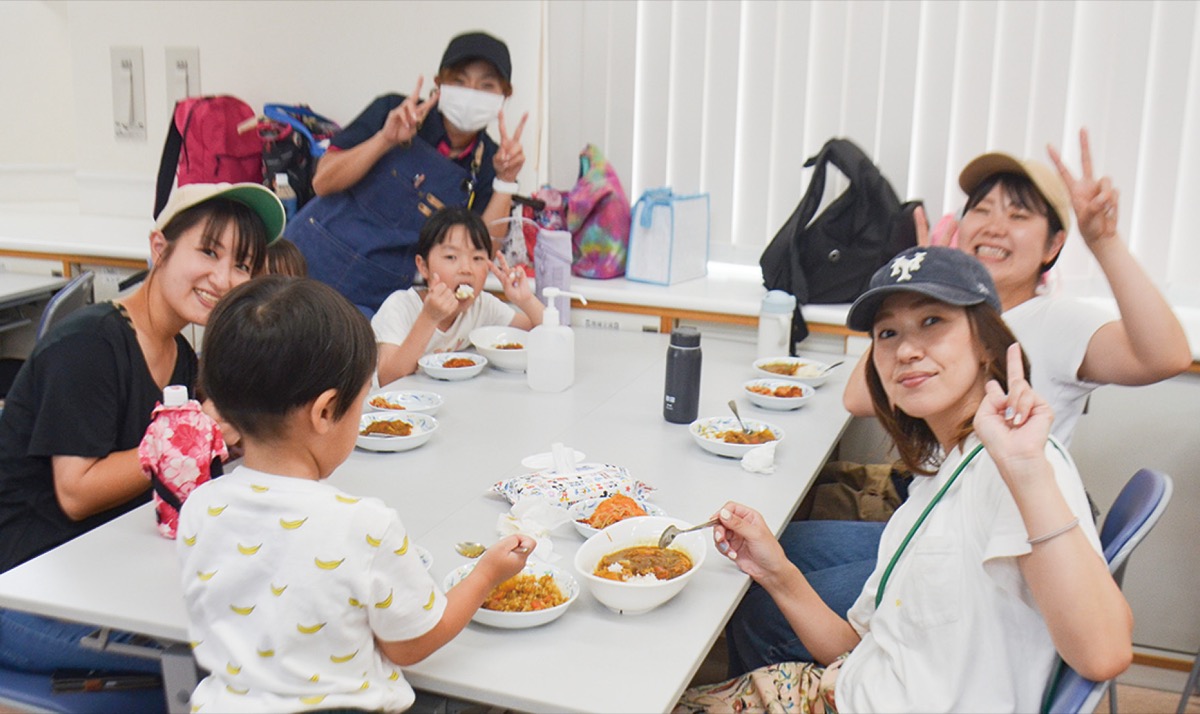7月31日に行われた子ども食堂には、過去最多の約40人が参加。この日、初めて顔を合わせたという参加者同士も見られ、カレーライスを頬張りながら交流した。子どもたちは食事前後におもちゃで遊び、友人の輪を広げていた。親子での参加者も多く、「野菜が新鮮でおいしい。ナスなどの野菜を川島町周辺で栽培していることを知り、まちの誇りだと感じる」と話し、地元の魅力を再認識した人もいた。