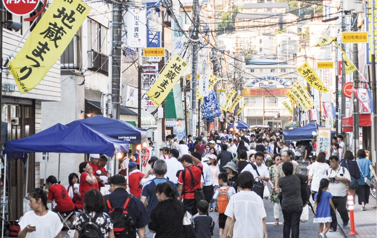 地元住民の間では「地蔵様」と呼ばれている和田地蔵が建立されたのは元禄2(1689)年。阿弥陀仏像の庚申塔で和田町では昭和初期まで庚申講が盛んだったとされている。同商店街が中心となり、地蔵菩薩の命日に合わせて開催されるのが和田地蔵まつりだ。