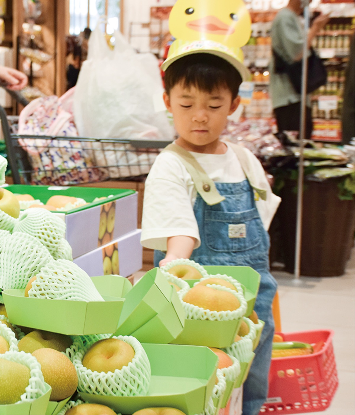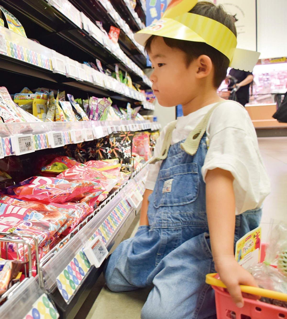 約半年前から「買い物をしてみたい」と言っていたという清(せい)田(だ)一(いち)冴(ご)くん(3)は、母親が描いた商品のイラストを頼りにナスやトウモロコシ、ナシなどを1つずつ見つけてカゴに入れていった。最後に書かれた「おかし1こ」をカゴに入れる際は、大好きだというグミの前でじっくり選んでいた。買い物を終えた一冴くんは「探すのが楽しかった。またやってみたい」と口にした。また、4才の女児も「初めて買い物をしたけど楽しかった」と笑顔を見せた。
